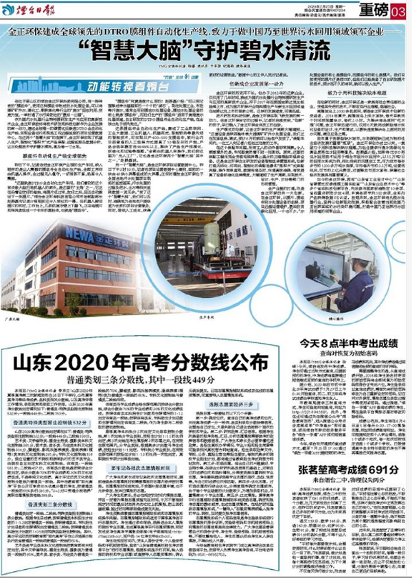 在位于萊山區的煙臺金正環保科技有限公司,有一種神奇的“膜組件”,使用這種膜組件制成的水處理設備,可以將煤礦礦井水、煤化工、鋼鐵焦化等行業的“廢水”回收利用、變廢為寶,一舉打通了水污染防治的“最后一公里”。