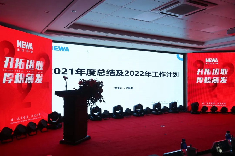 2021年是不平凡的一年,是收獲滿滿的一年。一部《金正2021年度大事記》視頻短片拉開了表彰大會的序幕。大事記短片以時間軸的方式展現了2021年全體金正人用拼搏和努力在污廢水處理行業取得的收獲與成果。