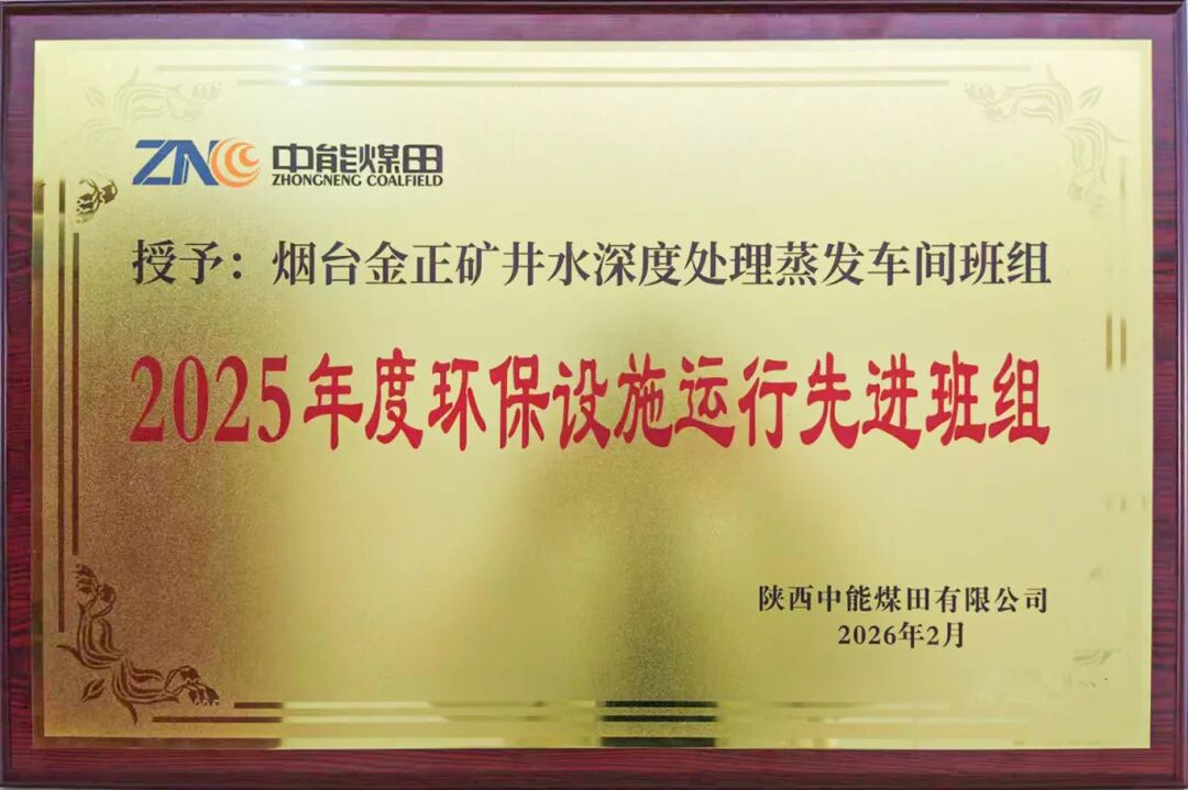 近日,煙臺(tái)金正環(huán)保“脫穩(wěn)耦合平板膜”創(chuàng)新工藝的首個(gè)規(guī)模化應(yīng)用——陜西中能煤田袁大灘煤礦項(xiàng)目再傳捷報(bào),“煙臺(tái)金正礦井水深度處理蒸發(fā)車間班組”連續(xù)第二年被陜西中能煤田有限公司授予“2025年度環(huán)保設(shè)施運(yùn)行先進(jìn)班組”榮譽(yù)稱號(hào)。